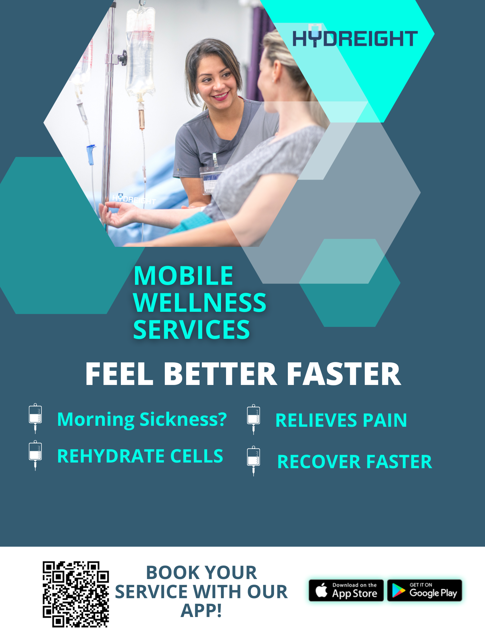 with our Mobile IV Hydration service, you can now bid farewell to those pesky morning sickness symptoms and embrace a revitalized, energetic you! All from the comfort of your own HOME.